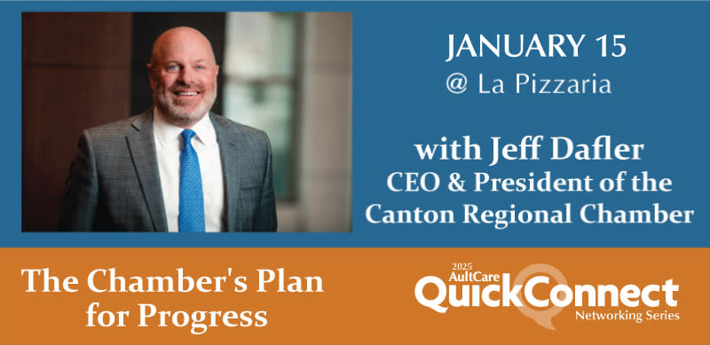 Join the Canton Regional Chamber on Wednesday, January 15, for our first networking luncheon of 2025, sponsored by AultCare. Jeff Dafler, CEO & President of the Chamber, will reveal more about the Chamber's vision for serving our diverse members and driving regional growth.