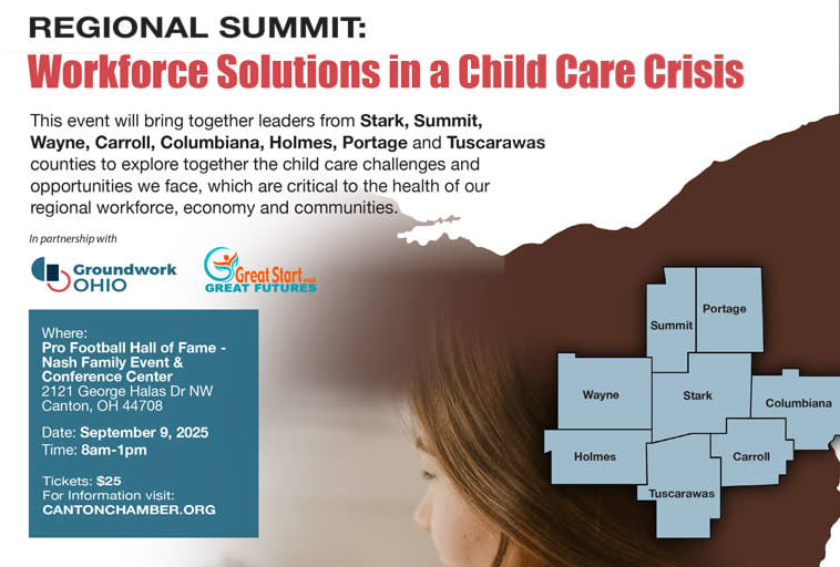 The Canton Regional Chamber of Commerce, in partnership with the Great Start for Great Futures Coalition and Groundwork Ohio, invites employers, community leaders and child care experts from across our region to explore innovative, employer and community-driven solutions that support working families and strengthen our workforce including the child care workforce.