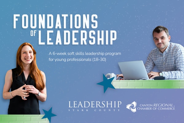 DESCRIPTION:Foundations of Leadership is a 6-week soft-skills development program for young professionals ages 18 30 focused on building confidence\, communication ability\, and professional presence.\nThrough hands-on learning\, guided practice\, and peer feedback\, participants gain practical tools to lead meetings\, present ideas\, work effectively on teams\, represent their organizations professionally\, and build strong workplace relationships. Many of these skills may seem basic\, but they are rarely formally taught. Without guidance or mentorship\, professionals are often expected to figure them out on their own.The program focuses on core competencies that accelerate early-career growth\, including communication\, networking\, and professional etiquette. By strengthening these foundational skills\, the program supports regional workforce development and stronger teams across Stark County and beyond.Program Cost: $675\nStarting: May 4\, 2026\nWhen: Mondays | 9:00 11:00 AM Apply Now Program ScheduleWeek 1   Professional Presence & Workplace Communication   May 4\nWeek 2   Presentation Skills & Public Speaking (Part 1)   May 11\nWeek 3   Networking: In-Person & Online   May 18\nWeek 4   Presentation Skills & Public Speaking (Part 2)   June 1\nWeek 5   Professional Etiquette & Workplace Events   June 8\nWeek 6   Leadership Showcase & Graduation   June 15Program GoalsPrepare participants to represent themselves and their organizations effectivelyStrengthen communication and presentation skills in professional settingsBuild confidence in networking and relationship-buildingDevelop a polished professional presence\, online and in personEquip early-career professionals with foundational leadership habits